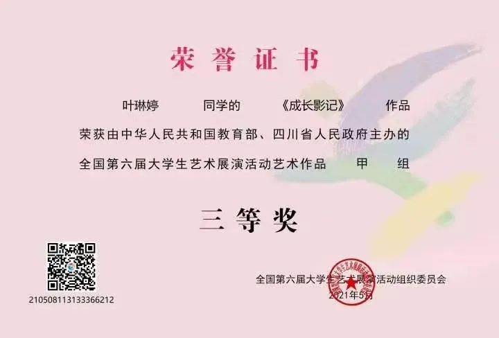 《成长影记》(作者叶琳婷 指导老师:胡铸鑫)获全国艺术作品类三等奖(甲组);