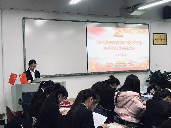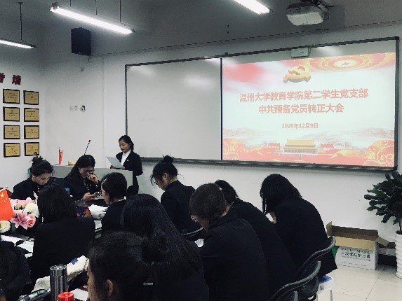 2020年12月9日,第二学生党支部中共预备党员转正大会在财神捕鱼 9A204举行,会议由支部书记柴广召同志主持,该支部全体党员参与此次会议。经党支部大会决议,一致同意竹滢、王鑫慧、徐瑾、徐梦姣、俞晨薇、陈玲、曹佳倩、胡思萍和方艳九位同志按期转为中共正式党员。