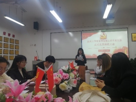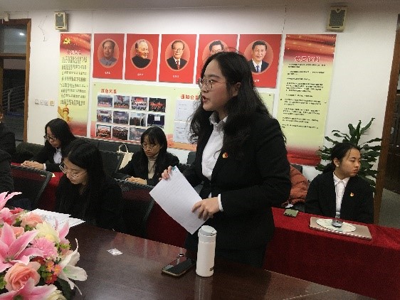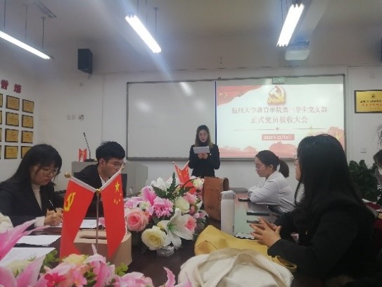 2020年12月7日,第四学生党支部中共预备党员转正大会在财神捕鱼 9A204举行,会议由潘雨蝶同志主持,该支部全体党员参与此次会议。经党支部大会决议,一致同意傅琳菲、张思娴、范泽南和程宗婵四位同志按期转为中共正式党员。