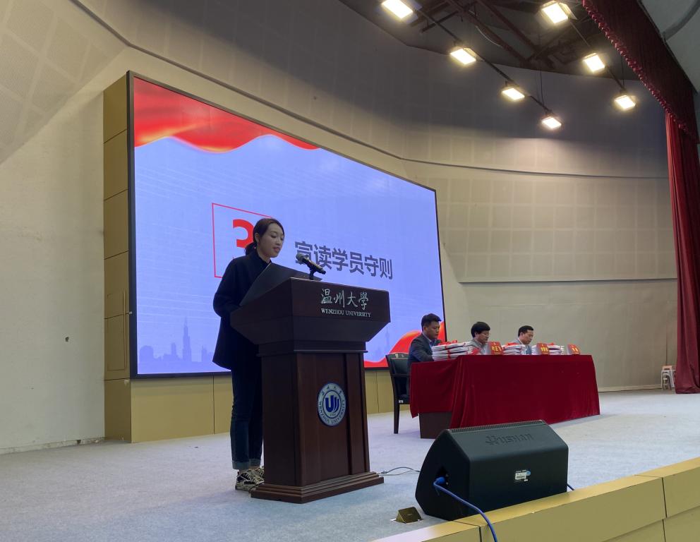 接着,学员代表来自人文财神捕鱼 的马东旭同学在发言中代表全体学员郑重承诺:一是努力学习,增强对党章党规的了解,提高自己的政治理论素养以及党性修养;二是端正入党动机,时刻铭记自己入党的初心与使命;三是端正学习态度,严格遵守党校纪律,积极配合党校老师以严谨的态度对待学习的每一个环节,自觉向周围同学宣传党的知识以及各项方针政策。