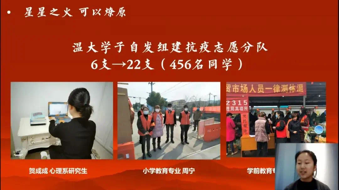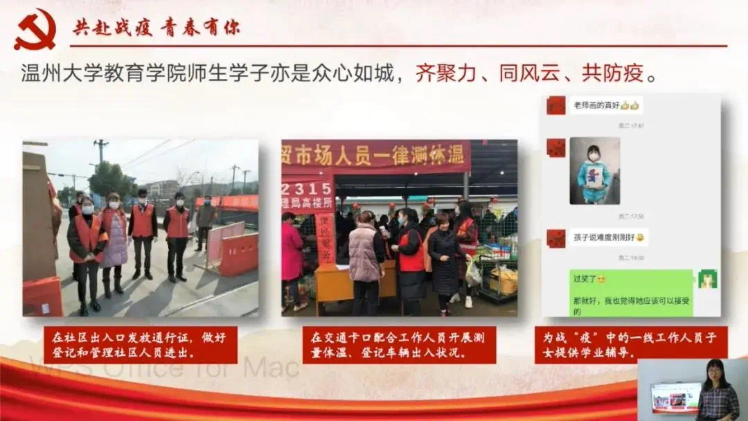 疫情暴发以来,青年党员在战疫过程中见证着党和国家抗疫的决心,也为防控疫情贡献着自己的青春力量。今年三月中旬,由长三角高校书院联盟筹办、南京审计大学泽园书院承办的战“疫”云党课比赛,以“党旗在战‘疫’中飘扬,青春在奋斗中绽放”为主题,图文、短视频、Vlog等为形式,面向书院党员征集优秀“云党课”作品。