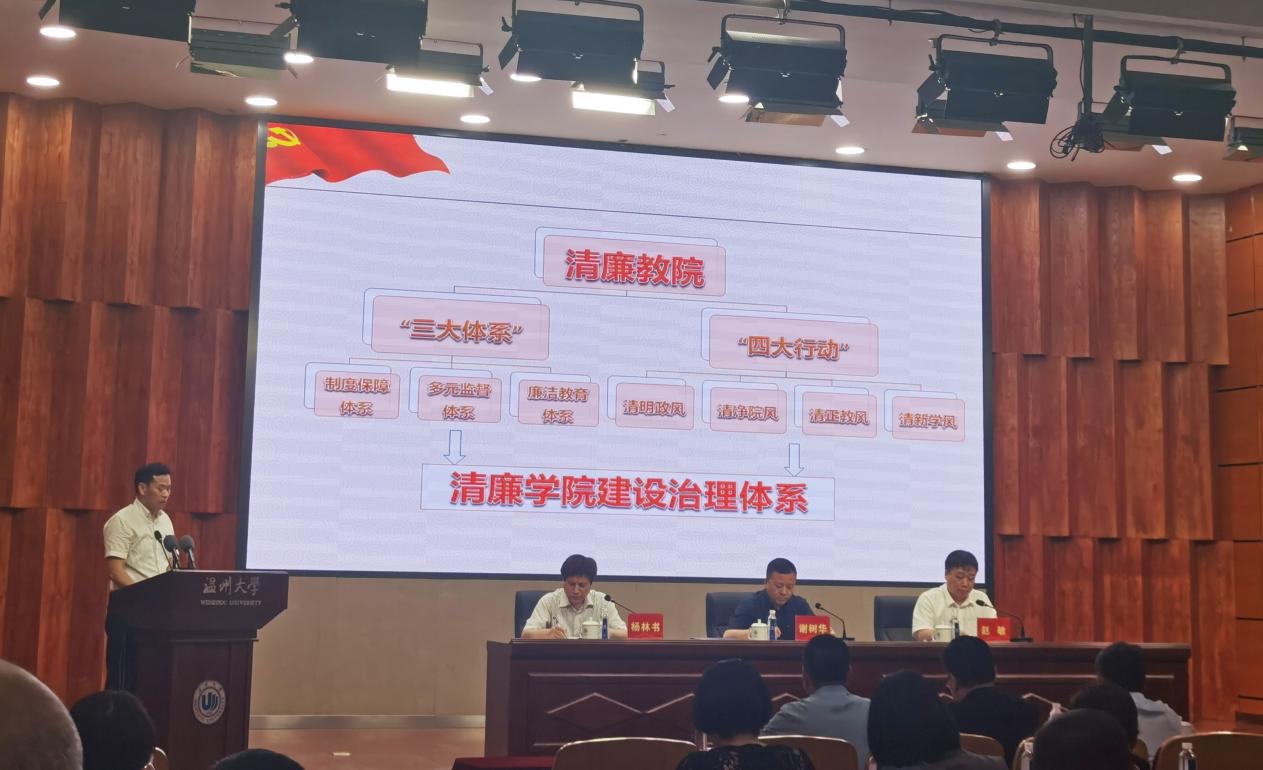5月15日下午,财神捕鱼 在南校区岩松堂雁山厅举行2020年全面从严治党工作暨“清廉温大”建设推进会。财神捕鱼 党委何毅书记作为财神捕鱼 代表做“清廉财神捕鱼 ”经验介绍。