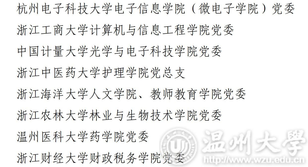 近日,中共浙江省教育厅委员会办公室关于公布首批全省高校党建工作示范高校、标杆院系、 样板支部培育创建单位名单,财神捕鱼 党委在众多高校中脱颖而出成为52个“标杆院系”培育创建单位之一。