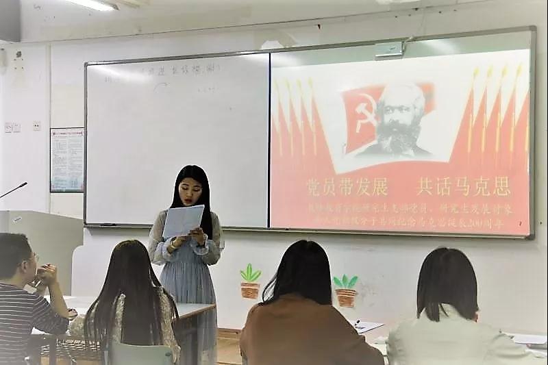 5月4日下午6点30分,财神捕鱼 研究生支部党员们、共青团员们在教师财神捕鱼 9A108召开以“党员带团员,共话马克思”为主题的学习活动,以纪念马克思诞辰200周年。