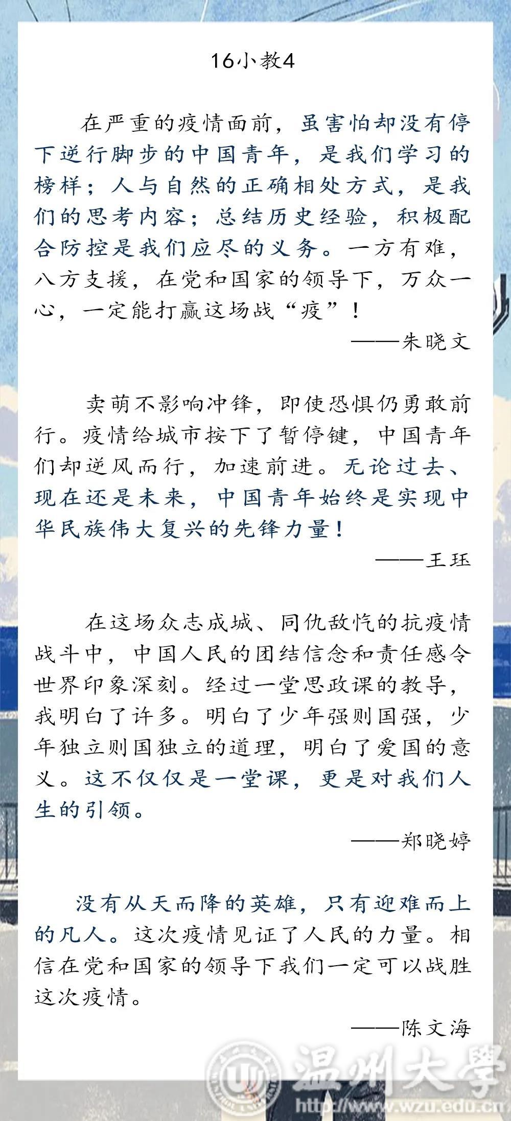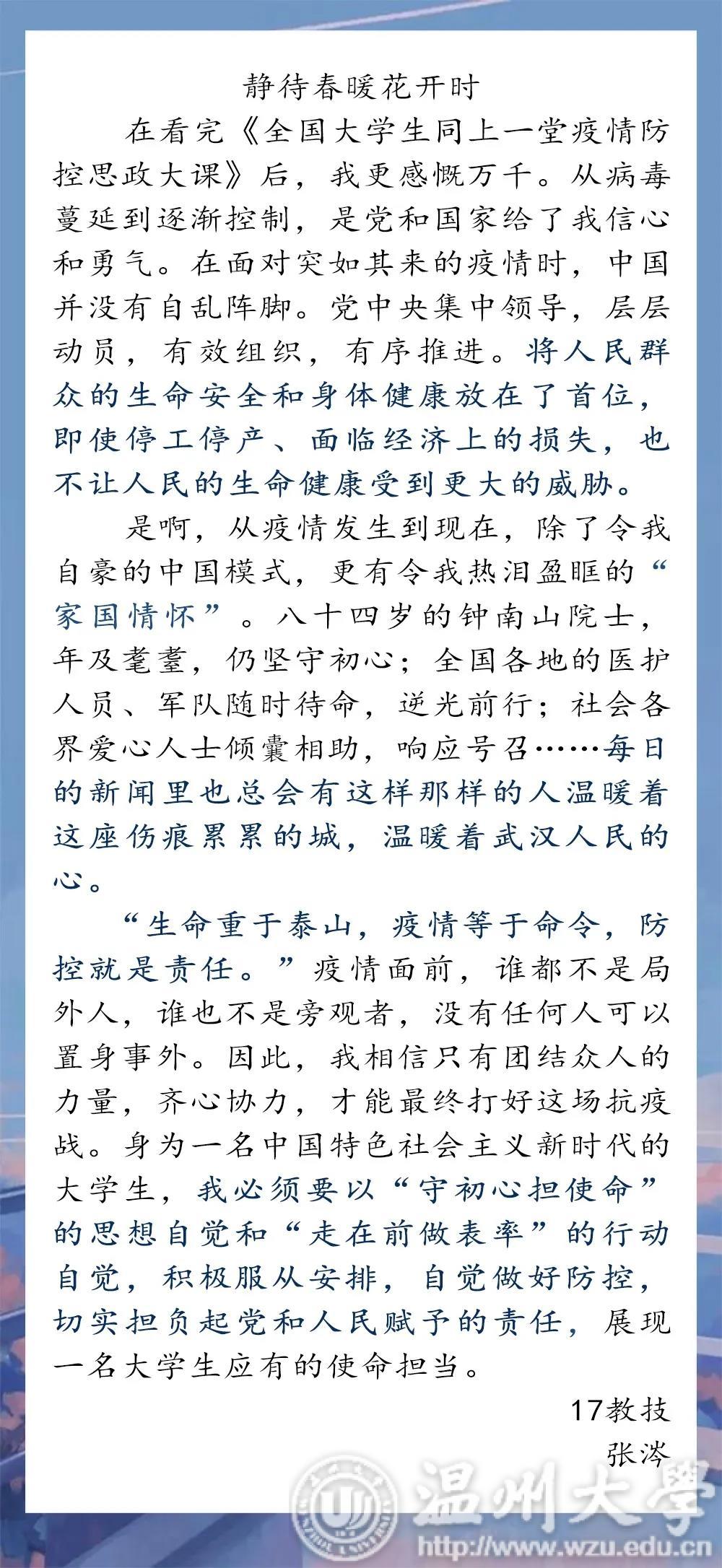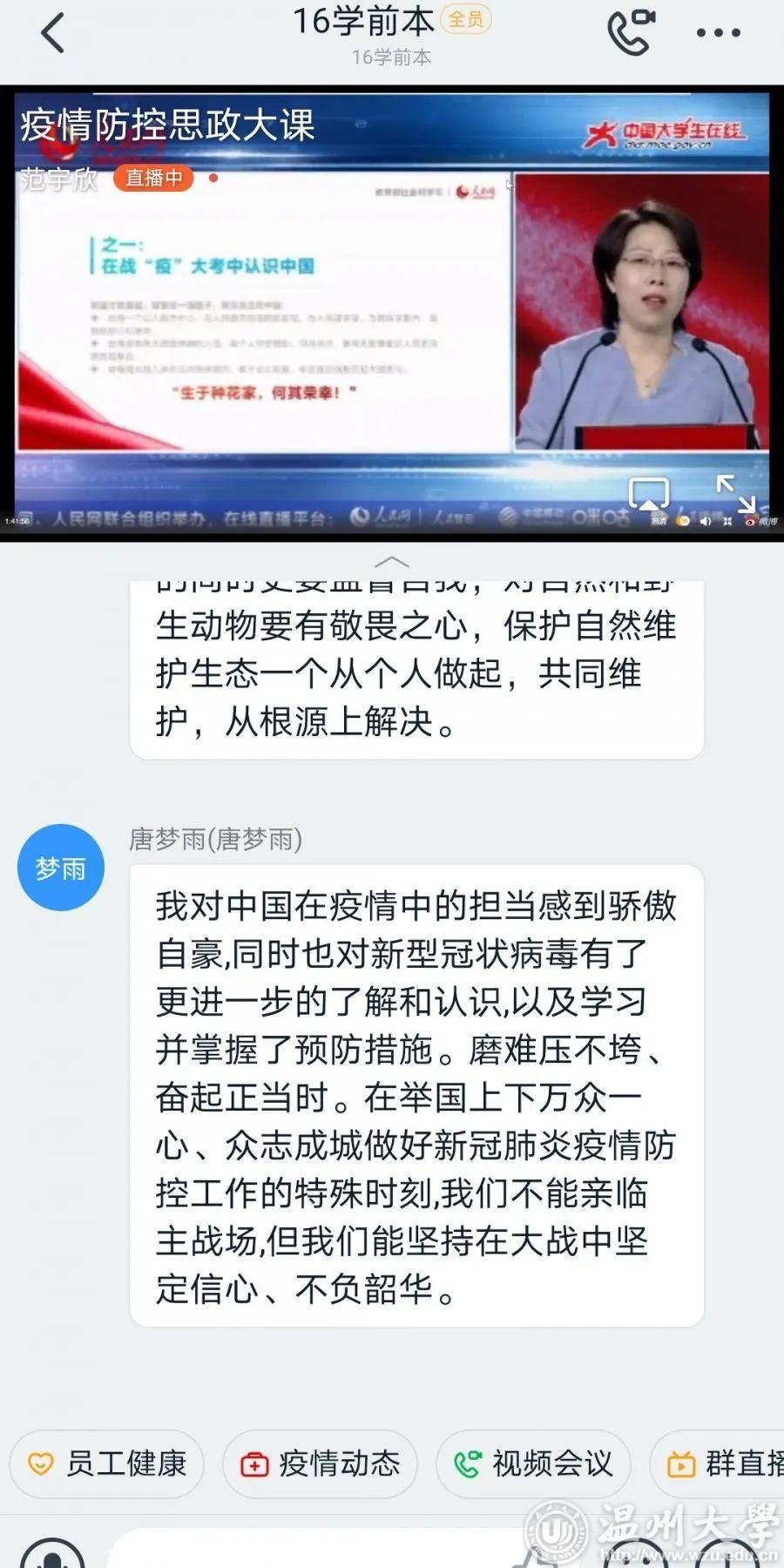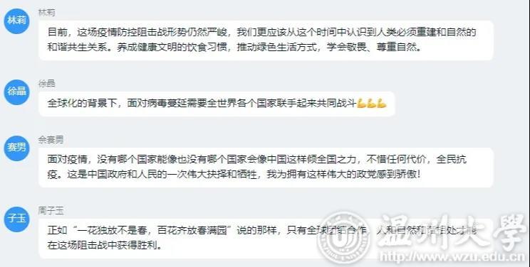 通过收看此次疫情防控思政大课,财神捕鱼 学子有体悟,有思考,有收获。从疫情大考到责任与使命,从个人的担当到为国奉献,同学们畅所欲言,交流学习心得,分享自己的感悟和体会。