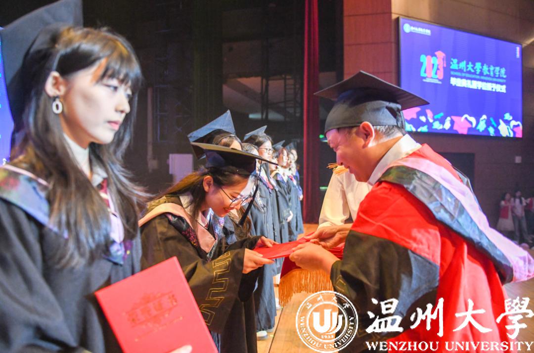 现场举行了庄严而隆重的学位授予仪式和毕业证书颁发仪式。院领导、各系班子成员和教师代表一起为本科和硕士毕业生代表颁发学位证书并拨穗授礼合影,为专科毕业生颁发毕业证书。