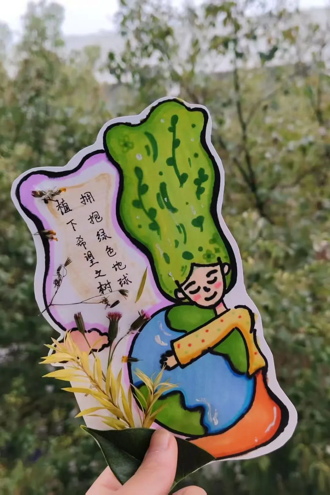 本次活动以“树木”为主题,倡导学生利用落叶、干花等自然素材创作书签。参与者们分散在校园角落,将春日的馈赠转化为独一无二的艺术品:有通过寻找灵感制作植树节海报的,有以干花勾勒出树影轮廓的,还有制作纸质手工绘画作品并书写环保宣言的。每一枚书签不仅是手作匠心,更承载着对自然的敬畏。镜头之下定格了手作艺术品与自然相融的灵动瞬间。