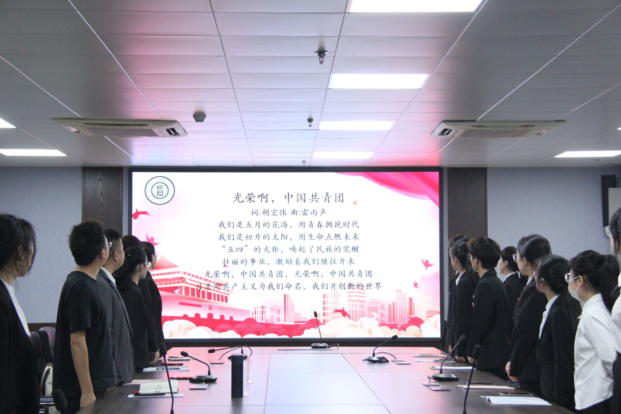 仪式伊始,全体起立,齐唱团歌。