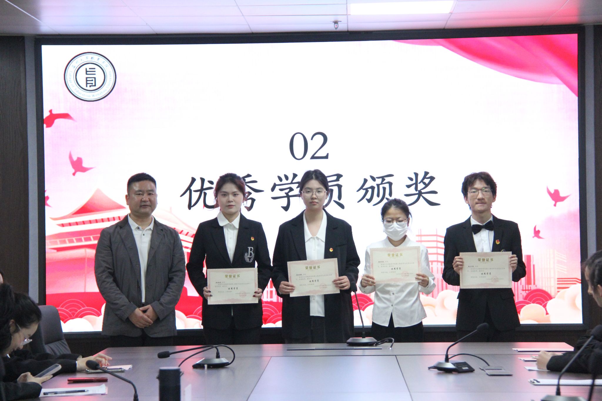 在财神捕鱼 第八期青马班培训中,每一位学员的思想道德素质、政治理论水平、创新能力、实践能力和组织协调能力都得到了极大提高,孟江龙为第八期青马班学员颁发结业证书。同时,根据各参训学员的日常表现、结业成绩等数据,决定授予葛泽茹、陈娅蝶、邵伊娴、鲍琪瑶、宋方港“优秀学员”称号,并由章志图颁发荣誉证书。