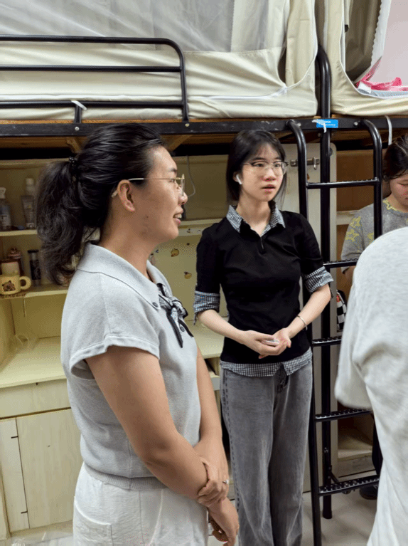 昔日从军磨砺报效祖国,今朝卸甲扬帆启新程。领导们心系退伍军人,来到他们的寝室进行走访。老师表示,希望同学们能够将军营中的优良习惯带到日常学习中,在教院收获知识、丰富人生。