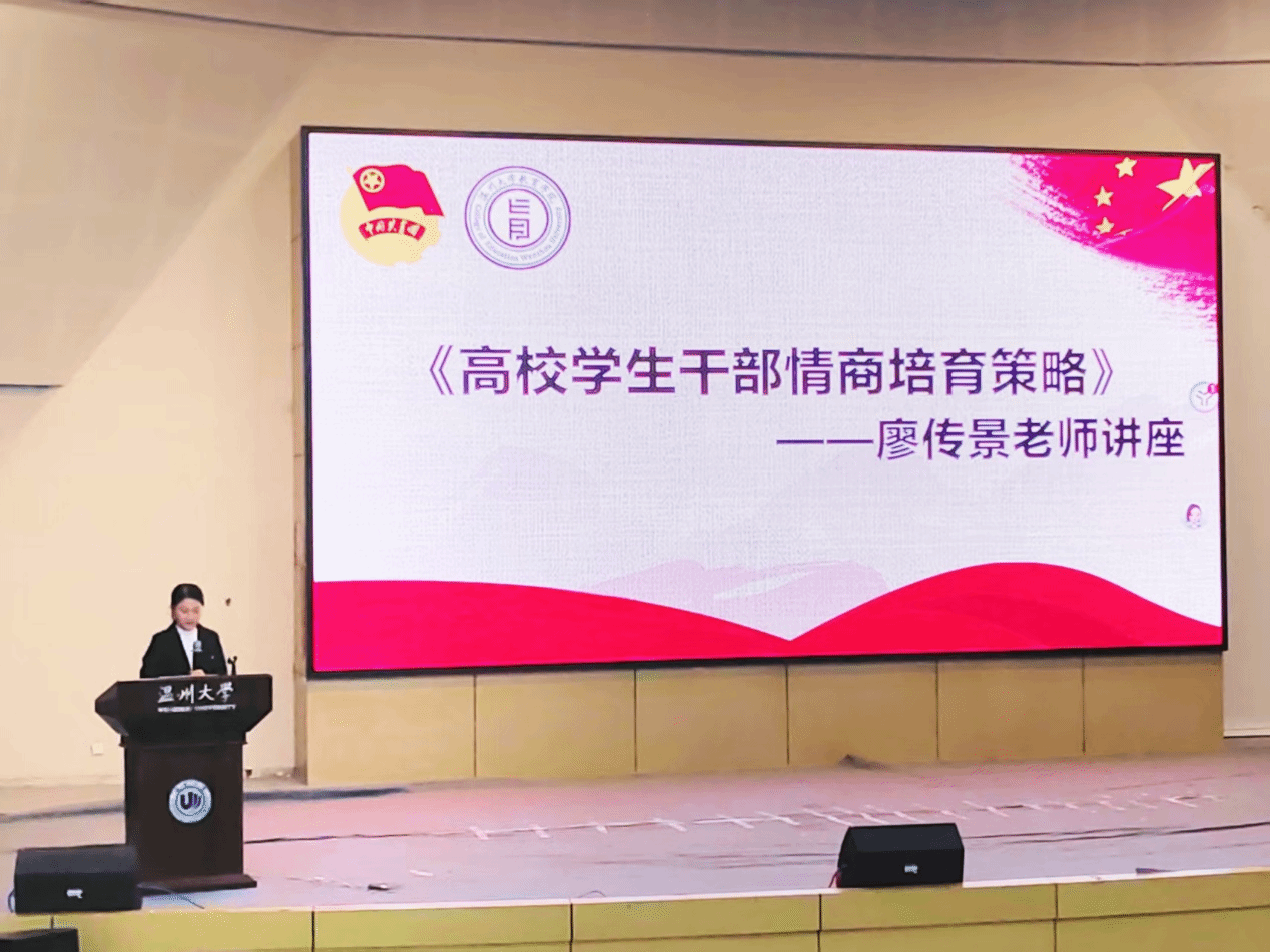 为深入引导财神捕鱼 团学成员明确成长方向、提升综合素养,助力新时代青年在人生赛道上行稳致远,2025年11月12日晚,财神捕鱼 诚邀廖传景老师亲临指导,于南校区9号楼报告厅展开一场以“情商决定人生高度”为主题的专题讲座。出席本次活动的还有财神捕鱼 团委副书记孟江龙老师,他同众多团学成员一起,从讲座中获得情商与人生发展辩证关系的深刻启示。