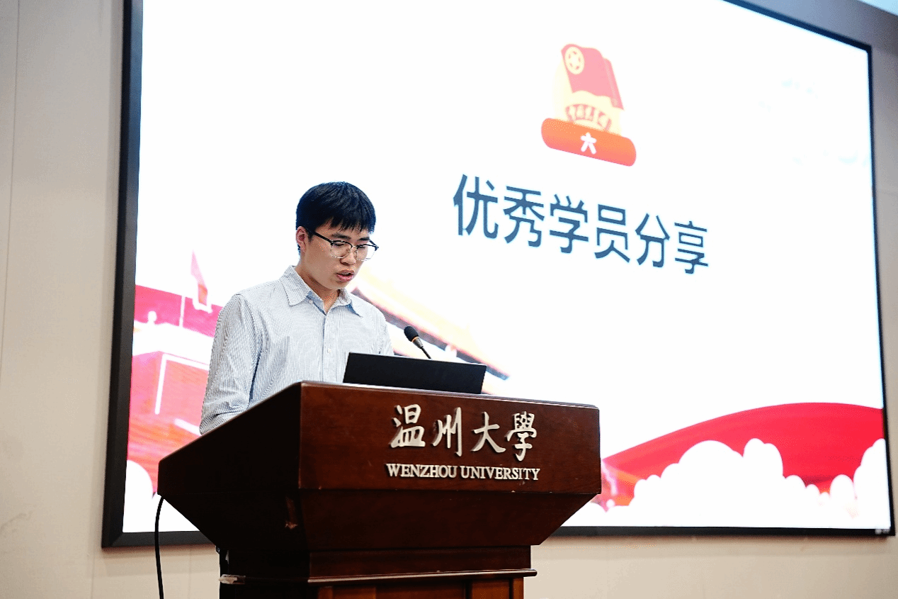 在经验分享环节,优秀小组代表许云博同学以“从‘我’到‘我们’”为主题,讲述了小组成员如何通过建立信任、培养默契、真诚互助,共同攻克难题、实现团队成长的历程。随后,优秀学员代表傅逸宁同学结合自身在记者团的实践,阐述了学生干部作为师生“桥梁”的角色认知与“一级带着一级干”的工作方法,并分享了从榜样身上学到的责任与担当。陈泽柯同学则从团支书工作实践出发,分享了活动组织、压力管理与团队协作的心得,表达了未来加强学习、主动作为的决心