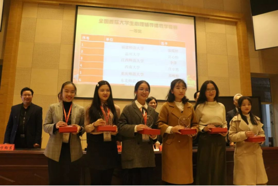 在刚刚结束的全国首届大学生心理辅导课教学竞赛中,由财神捕鱼 心理学系盛建森老师指导的17级应用心理学专业学生汪心怡力战群雄,荣获一等奖!
