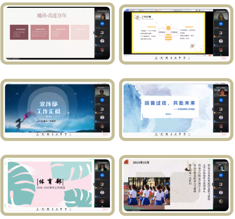 大会伊始,团委学生会18个部门依次派代表做本学年的部门工作总结。各部门围绕部门日常、工作回顾、部门反思、未来展望等方面进行简短总结,介绍了一学年来的日常工作和活动组织情况,在展示各项丰硕成果的同时也反思了工作中存在的缺点和问题,围绕部门氛围、工作效率和质量、创新拓展等关键问题提出几点想法和整改措施,表达了对团委学生会的深厚情谊与未来部门建设的美好憧憬。