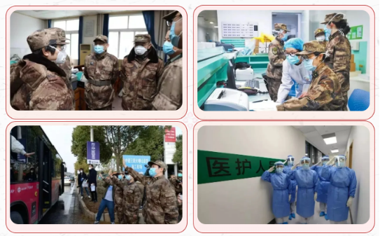 在这个春天,一场突如其来的疫情席卷中国。但是中国军人没有畏惧,在疫情防控一线,鲜红的党旗军旗高高飘扬,白衣战士们争分夺秒地救治患者,体现了人民军队履行使命任务的能力,展现了新时代革命军人的担当,书写了人民子弟兵对党和人民的忠诚。在这本该是合家欢庆的新春时刻,中国军人迅速投入驻地疫情防控工作中去,始终坚守在站位,为祖国献出自己的一份力量。许多支军队支援前线医疗队抵达战场时,常常来不及休整就要投入战斗,尽管条件如此艰苦,他们依然不会退缩,甚至主动请命抗击疫情——“首战用我”“我志愿上一线”……一句句铿锵誓言令人感动,成为战疫特殊时期的历史记忆。从除夕夜紧急驰援武汉,到组建抗击疫情运力志愿队,承担武汉市民生活物资配送供应任务;从积极协助配合地方开展疫情防控工作,到发动民兵投身生产一线,助力企业复工复产……人民解放军始终把人民的利益记在心上,舍小家顾大家,舍自己为人民。在这场没有硝烟的战场上,中国军人勇当人民生命安全和身体健康的捍卫者,汇聚起战疫必胜的磅礴力量。