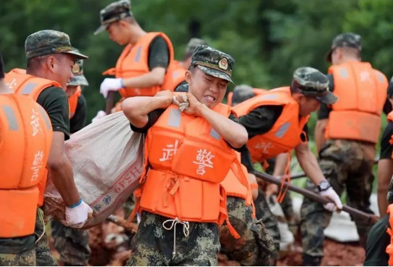 自今年进入汛期以来,南方多地发生了强降雨,致使多个城市出现较为严重的洪涝灾害。四川、广西、贵州、江西、福建等27省(区、市)均受洪涝灾害影响严重。在这危难关头,我国的解放军、武警部队官兵以及民兵们都紧急投入到了抢险救援中,从演训地、从海训场,多路挺进战场;全国多地国动系统第一时间启动预案,带领广大民兵勇冲一线,他们与时间赛跑,同洪水较量,为人民利益而战!在这一场声势浩大的战争中,人民子弟兵没日没夜地战斗着,许多官兵经过了长达十几个小时的抢险,一直浸在水里的脚已经泡得发白起皱了;由于连续的高温天气和南方气候的闷热潮湿,出现晒伤、湿疹的官兵不在少数,但是战士们都以抗洪任务为重,总是在简单处理伤口后又马上回到抢险救灾任务中。