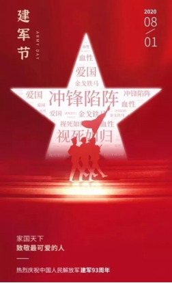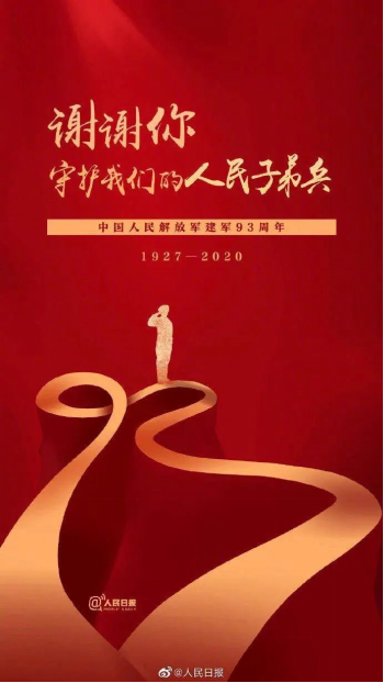 有一种理想,叫精忠报国;有一种责任,叫捍卫疆土;有一个佳节,叫八一建军;有一种骄傲,叫中国军人。在战乱纷飞的峥嵘岁月里,他们舍生忘死、奋勇杀敌,捍卫祖国的江山;而在和平年代里,他们仍然坚守在祖国的前线,用忠诚和热血构筑了中国军魂。无论是年初抵抗新冠疫情的战斗,还是七月份的抗洪行动,只要国家有需要,人民有需要,他们都能挺身而出,展现出军人的使命和担当。中国人民解放军,谢谢你们的守护,你们辛苦了!
