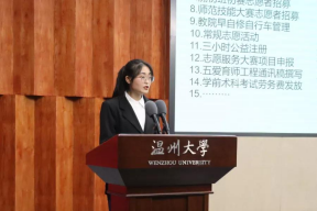吴超智进行总结发言。她感谢团学成员对财神捕鱼 学生工作的支持,肯定了一学年来团学取得的成绩,也殷切期望着学生干部们在日后明确自我定位、提升团队工作效能,完善服务体系建设,注重自身能力提升,在工作中学习,在学习中成长,从而推动教院团学大步向前、迈往未来。
