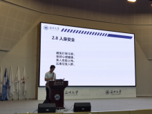 首先,保卫处副处长钱合激老师给大家带来安全教育讲座。指出了暑期安全的八大注意事项。对于防火、防诈骗、防溺水等问题做出了叮嘱。最后,也叮嘱学生牢记班主任、辅导员和保卫处的电话。