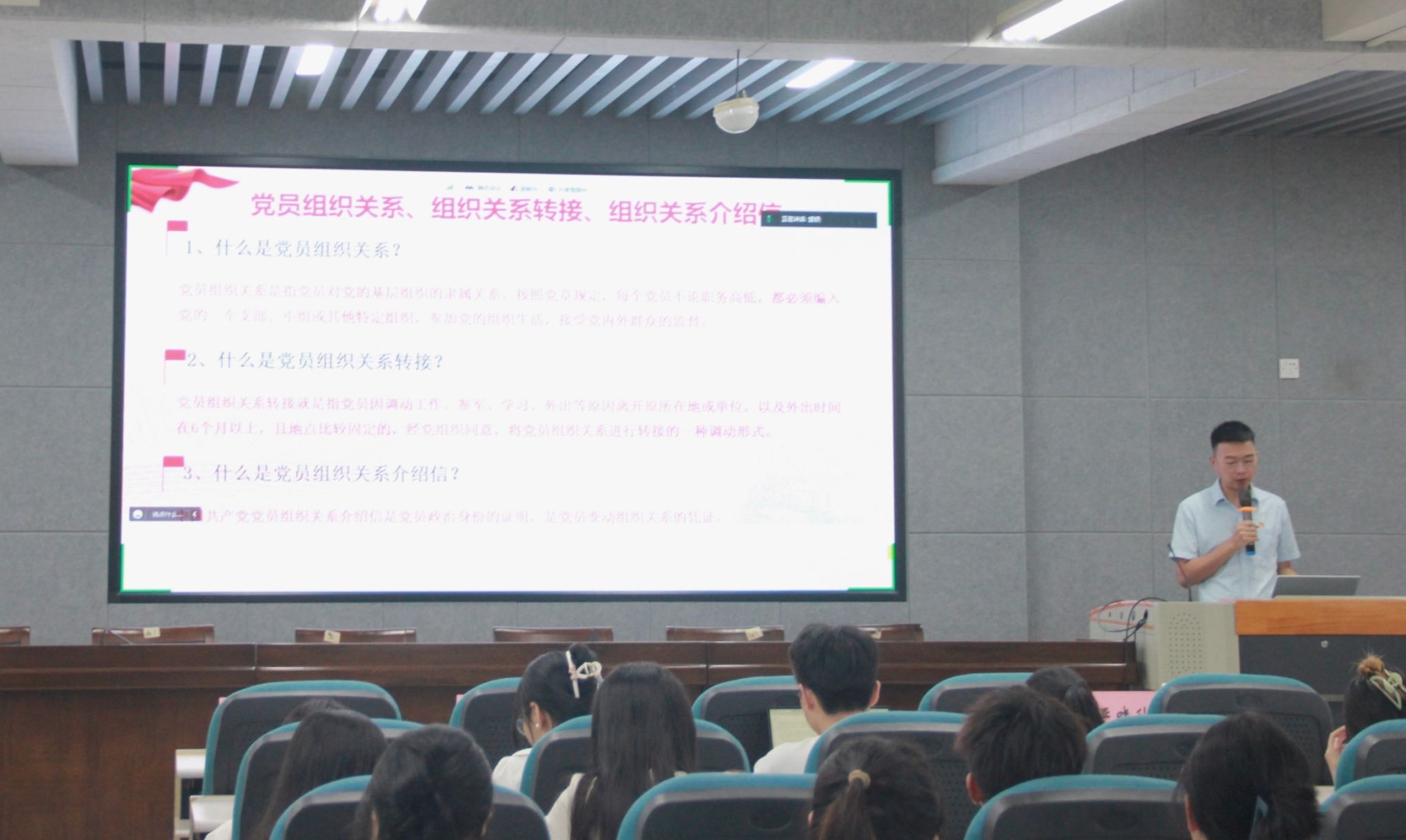 孟江龙老师就《2024届毕业生党员组织关系转接》相关手续和流程进行细致的讲解,并寄语毕业生保持本色、文明离校、前程似锦、发挥作用。