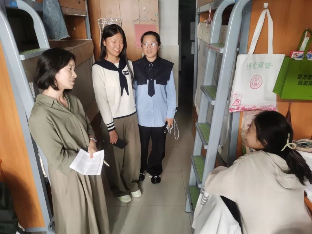 在走访过程中,老师们对同学们展现出的蓬勃向上的精神风貌给予了高度评价,这正是青春最好的体现。并且鼓励大家要继续保持良好的学习状态,勇于面对困难挑战,不断提升自己的综合素质,充实自己的大学生活!