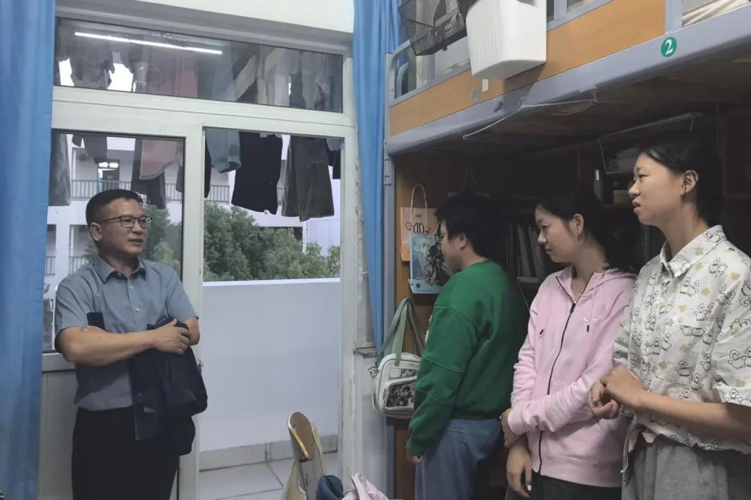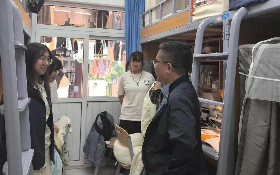每到一处,他们都仔细查看同学们的生活环境,详细询问大家的学习进度、生活起居以及遇到的困难和问题。领导们耐心倾听每一位同学的反馈,并对同学们提出的问题给予了积极的回应和指导,帮助同学们更好适应大学的生活。