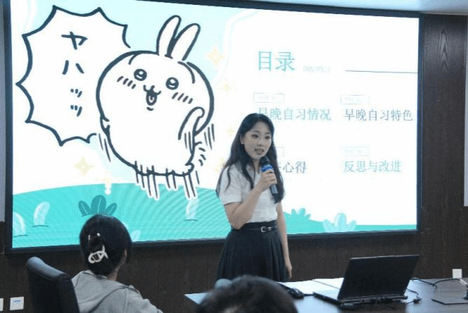 今晚的决赛现场,各班级纪检委员以逐个汇报的形式,展示特色早晚自习的丰硕成果。特色早晚自习的内容中无论是绘本故事的生动演绎,还是微电影的创意呈现;无论是童谣民歌的悠扬合唱,还是艺术舞蹈的精彩展示,都凝聚着同学们的智慧与汗水。同时早晚自习也是学风建设的窗口。各参赛的纪委用创意打破传统——有的设计“时间规划表”,培养自律习惯;有的开展“微格教学演练”,提升专业能力;这些实践都彰显出了财神捕鱼 “学高为师,身正为范”的追求。