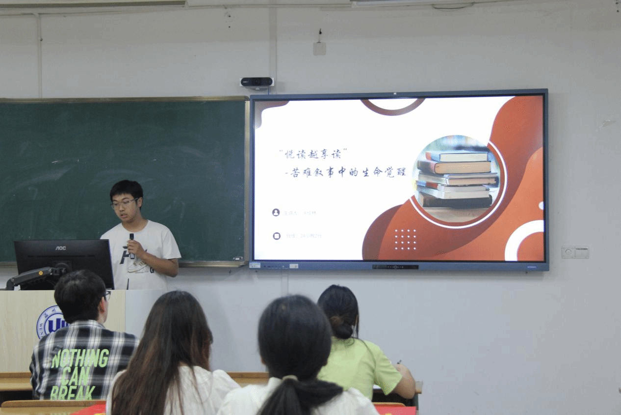 24小教1班同学介绍了过去一段时间班级阅读的基本情况,并且从专业角度分析了《小王子》《恋爱》《第七天》中关于教育的思考。同时,他们认为往事总在回忆中赋予意义,不同时间段阅读不同的作品都会有不同的感悟。