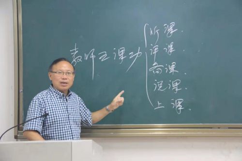 (4)实践教学。彭老师特别重视实践教学和技能训练。其教学内容和模式可概括为“359实践教学体系”(三习—五课功—九大技能)。“三习”即教育见习、研习、实习一体化,提高学生的教学实践能力;“五课功”即教师的听课、评课、备课、说课和上课等五个基本功课全面训练;“九大技能”包括上课时具备的各项能力技巧,如导入、提问、讲授、演示、板书、多媒体、练习设计、评价、课外辅导等。