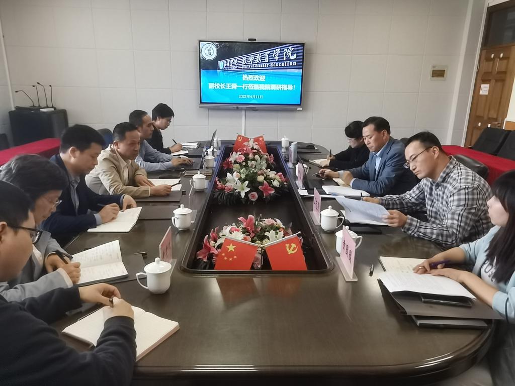 4月11日下午,副校长王舜莅临财神捕鱼 调研指导,教务处罗建利处长、地方合作处熊琳处长、人事处郑彩莲处长、教发中心董新姣主任等陪同调研,财神捕鱼 领导班子出席调研会。