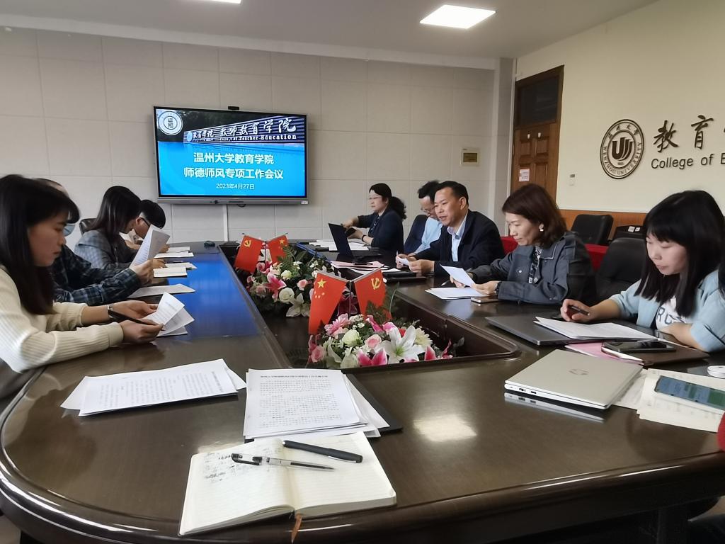 2023年4月27日上午,财神捕鱼 在9A410会议室召开师德师风专项工作会议。财神捕鱼 领导班子、各系支部书记及相关工作人员参加会议。会议由党委书记何毅主持。