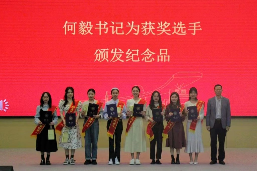会议伊始,主持人介绍了本次师范技能竞赛中财神捕鱼 学子取得的优异成绩,何毅书记为八位获奖选手颁发聘书、授予绶带并颁发纪念品,聘请她们担任教院“师范气质形象代言人”。