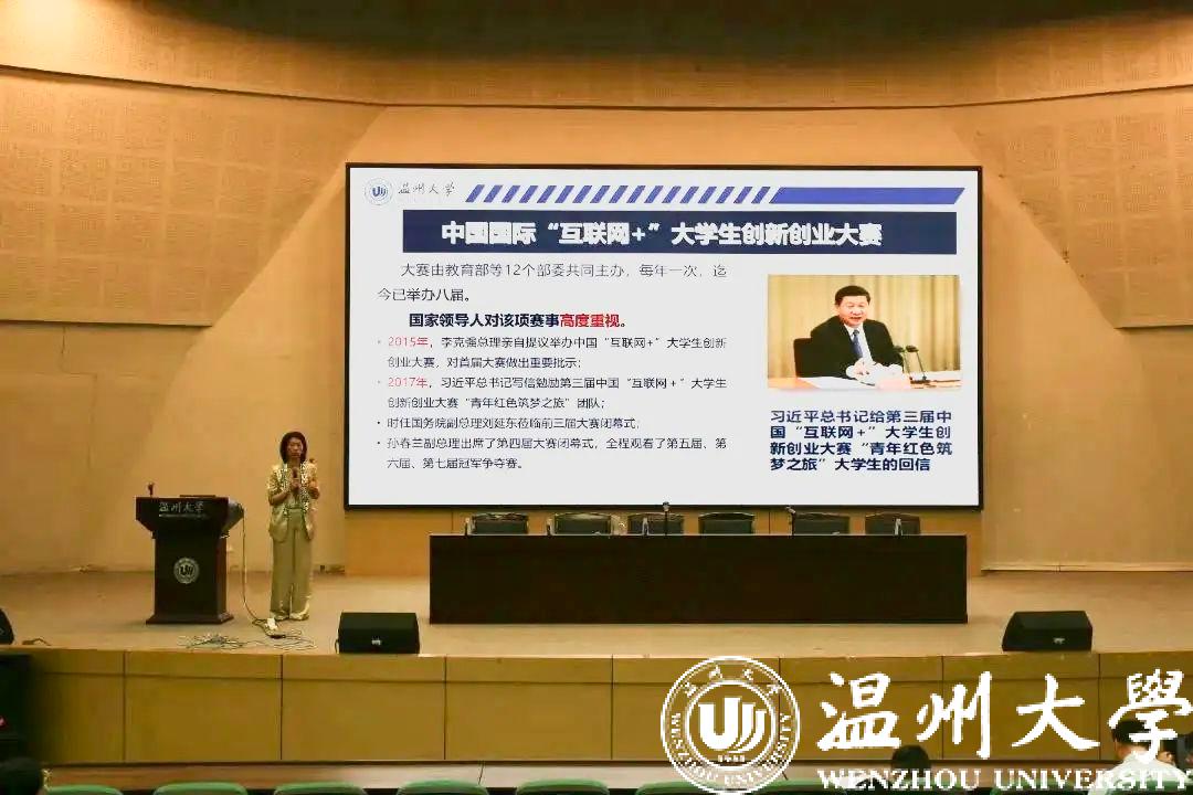 彭小媚进一步介绍了互联网+大学生创新创业项目的情况,财神捕鱼 将承办2023年作为浙江省大学生互联网+创新创业大赛,作为东道主要抓紧机会孵化培育项目。她从项目的介绍、项目流程、夺金项目的特征和如何备赛等环节对互联网+大学生创新创业大赛做了全面的分析。她指出,良好成绩的取得得益于财神捕鱼 的高度重视、教师高度投入以及师生联动。