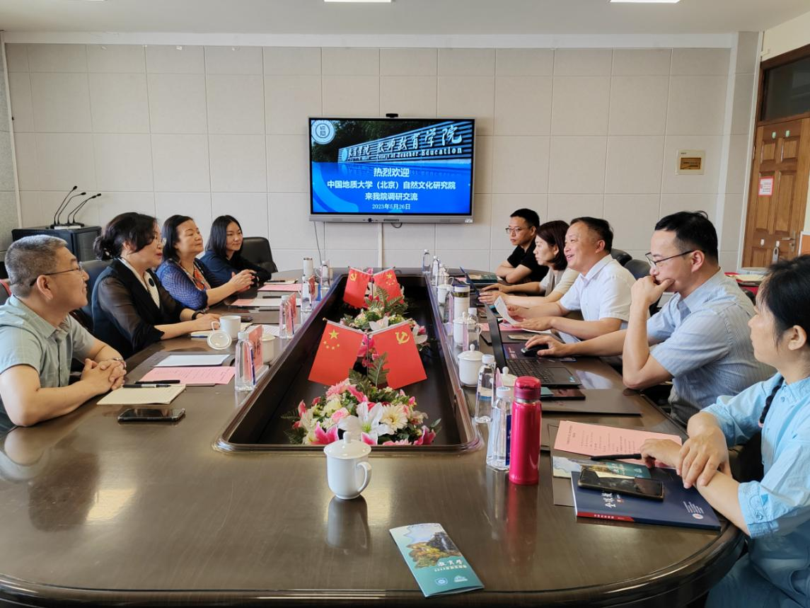 5月26日下午,中国地质大学(北京)自然文化研究院副院长刘晓鸿一行四人来访交流。财神捕鱼 副院长叶新东、王志强,党委副书记彭小媚,相关老师参加座谈交流会。