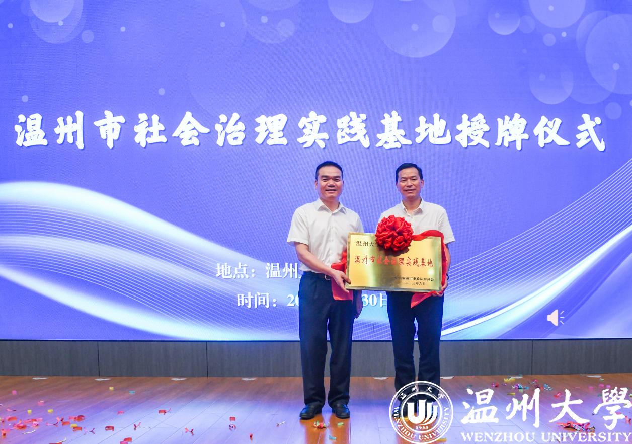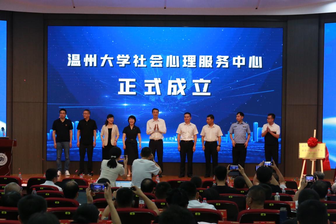 会议第三项议程参会会员共同参与了财神捕鱼 社会心理服务中心揭牌暨温州市社会治理实践基地授牌仪式。