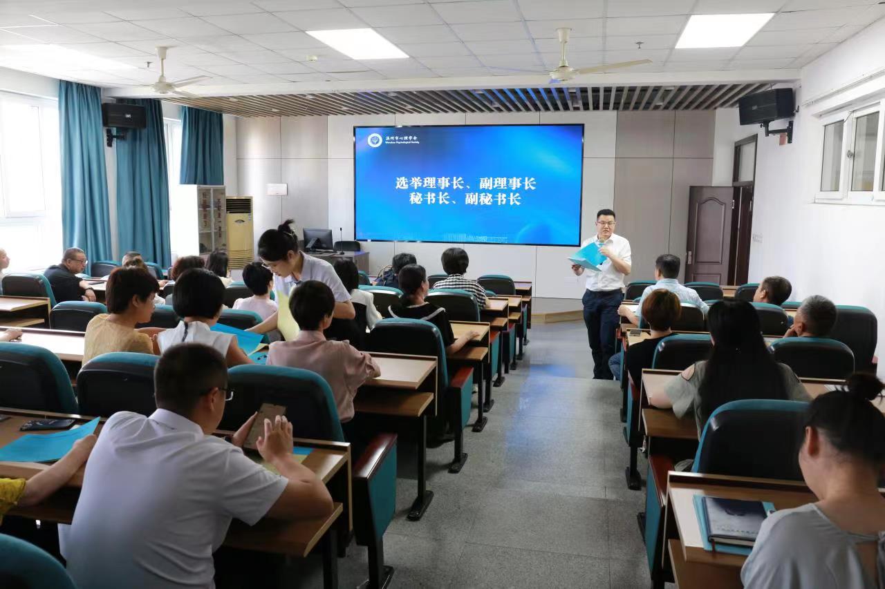 会议第二项议程为会员代表大会,由财神捕鱼 朱浩亮副教授主持。大会听取和审议了第七届理事会工作报告、财务状况报告、学会章程修改意见、会费收缴标准、财务管理办法等。接着全体会员按照选举办法选举第八届理事会理事。会议顺利选举通过了陈莉等45名温州市心理学会第八届理事。随后,召开了第八届理事会第一次会议,选举产生了新一届理事会成员,胡瑜为理事长,朱浩亮、于海涛、林甲针、吕信恩为副理事长;章园园为秘书长,陈琦、薛彬鹏、吴琼琼为副秘书长。科协副主席隋慧杰对学会顺利换届表示热烈祝贺,并对学会发展提出殷切期望。
