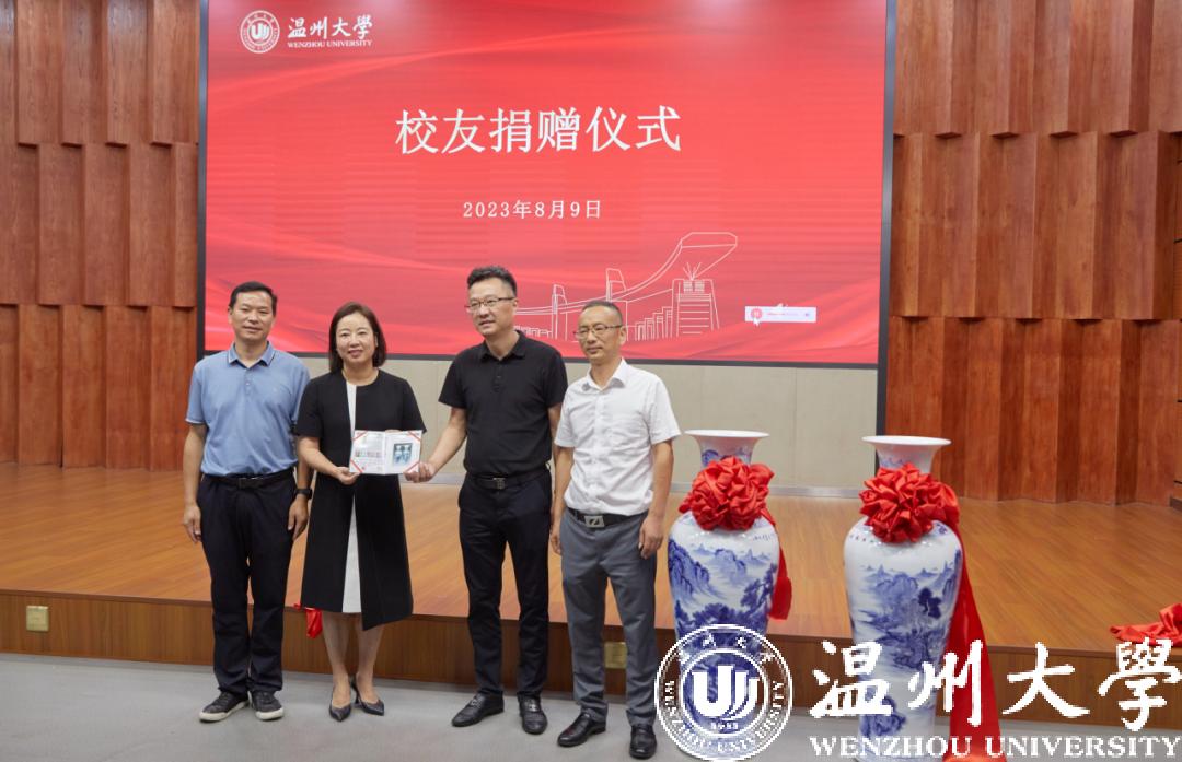 在捐赠仪式中,校友们捐赠了一对青花瓷花瓶,精致美丽的瓷器也寄托了校友们对母校繁荣的美好祝愿。