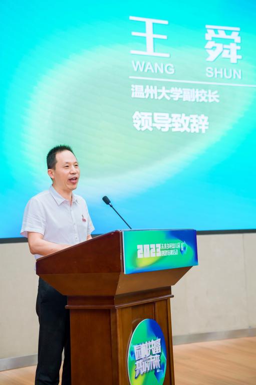 王舜副校长致欢迎词。他强调人生百年,立于幼学,财神捕鱼 在学前教育领域具有深厚基础和显著优势,长期关注并致力于服务温州学前教育事业的发展。本次活动积极响应市委市政府关于乡村振兴、教育共富的号召,发挥财神捕鱼 学前教育的学科优势和专业特长,以专业的人才团队、丰富的教育资源和深厚的科研实力为基础,厚植温州学前教育协同发展沃土,致力于推动温州市各乡村幼儿园的高质量发展,振兴乡村学前教育、赋能乡村振兴。