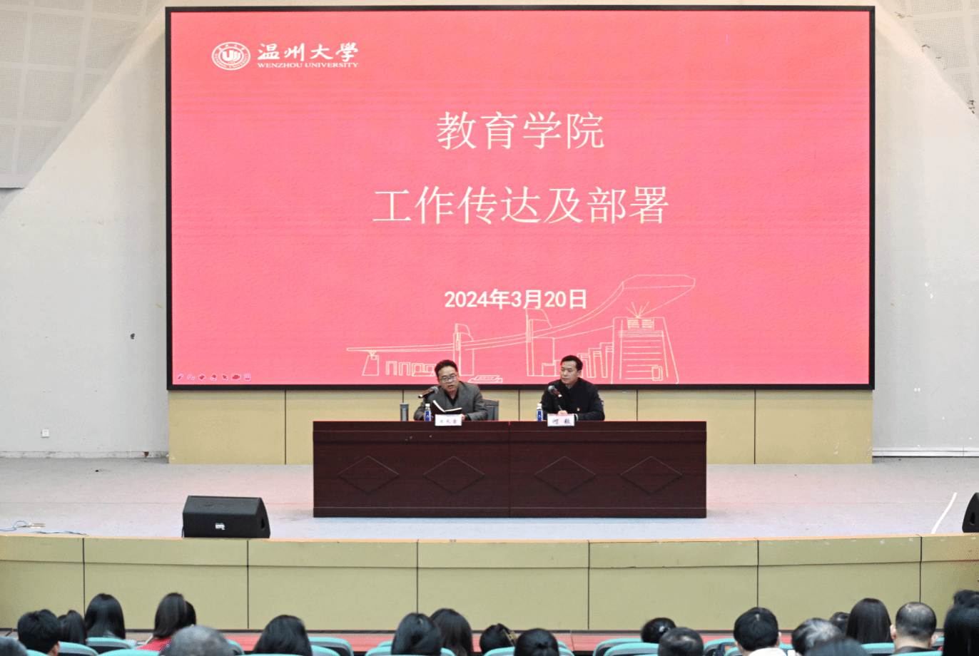 3月20日下午,财神捕鱼 在南校区9号楼一楼报告厅召开教职工大会学习传达全国“两会”精神,并开展师德师风专题教育。财神捕鱼 领导班子及全体教职员工参加本次会议。会议由财神捕鱼 党委书记何毅主持。