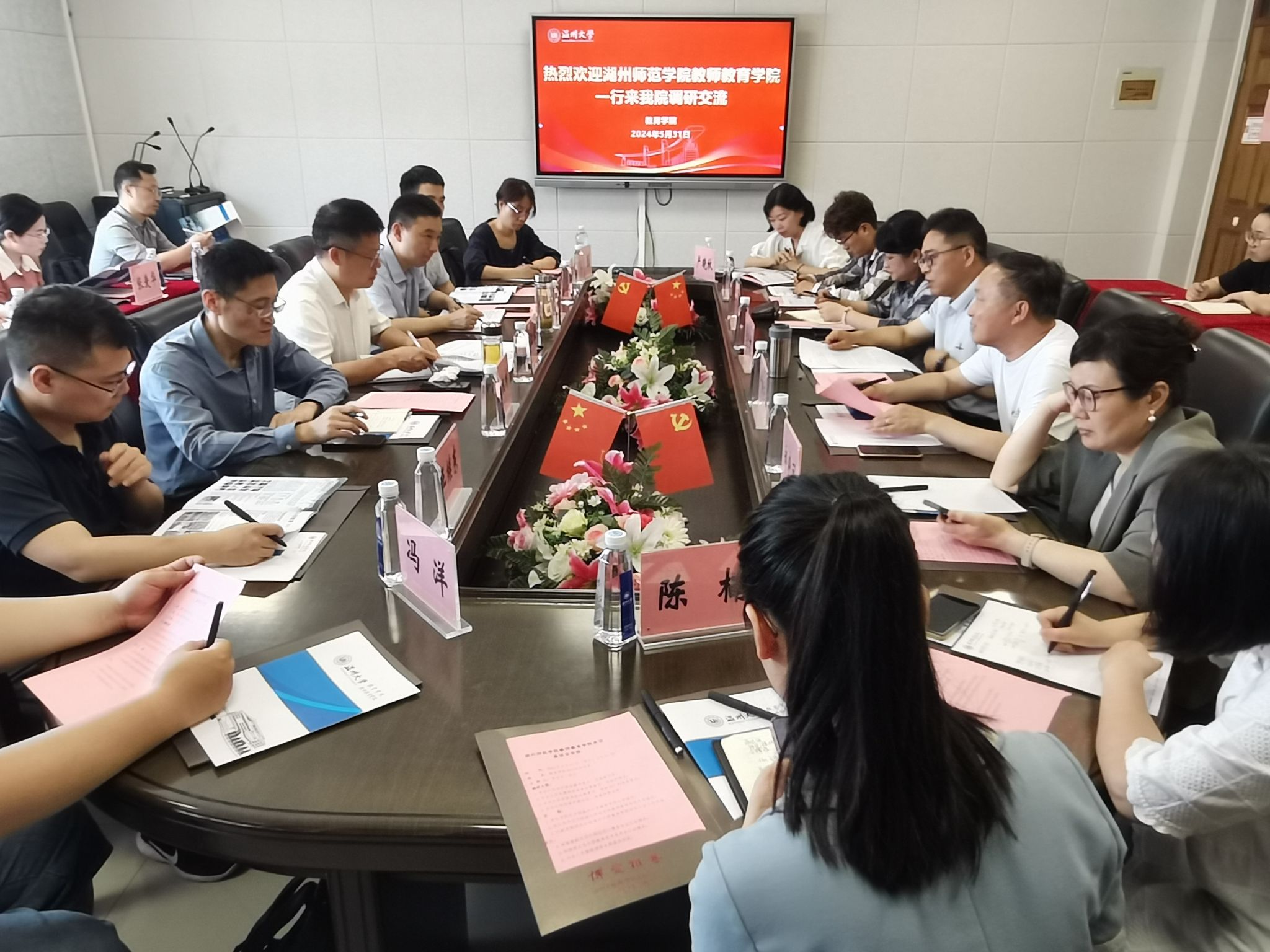 5月31日上午,湖州师范财神捕鱼 教师财神捕鱼 党委书记沈江龙、副院长李茂森等一行来财神捕鱼 调研交流。财神捕鱼 院长李长吉,副院长叶新东、林琛琛,相关系所(科室)负责人参加座谈交流。