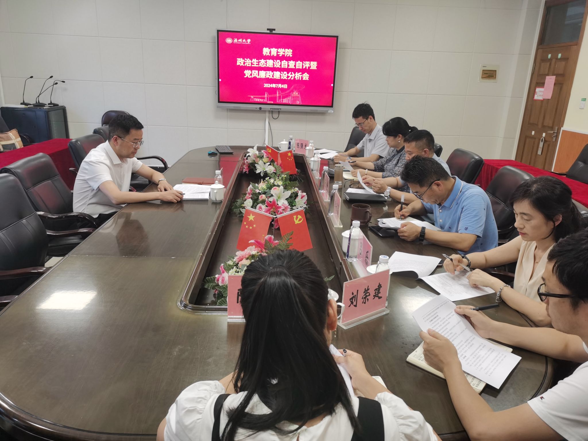 会上,张敏代表教育财神捕鱼 领导班子对财神捕鱼 2024年上半年政治生态建设、党风廉政建设、意识形态工作等情况进行汇报。他从师德师风建设、作风建设、人才引育、经费使用管理、非学历教育工作、学生宗教信仰、少数民族学生管理等方面分析了财神捕鱼 在党风廉政、意识形态方面可能存在的风险和漏洞,并深刻剖析了风险点存在的原因,围绕这些风险点提出了针对性的改进措施。班子其他成员就各自分管领域的党风廉政建设、意识形态工作做补充说明。