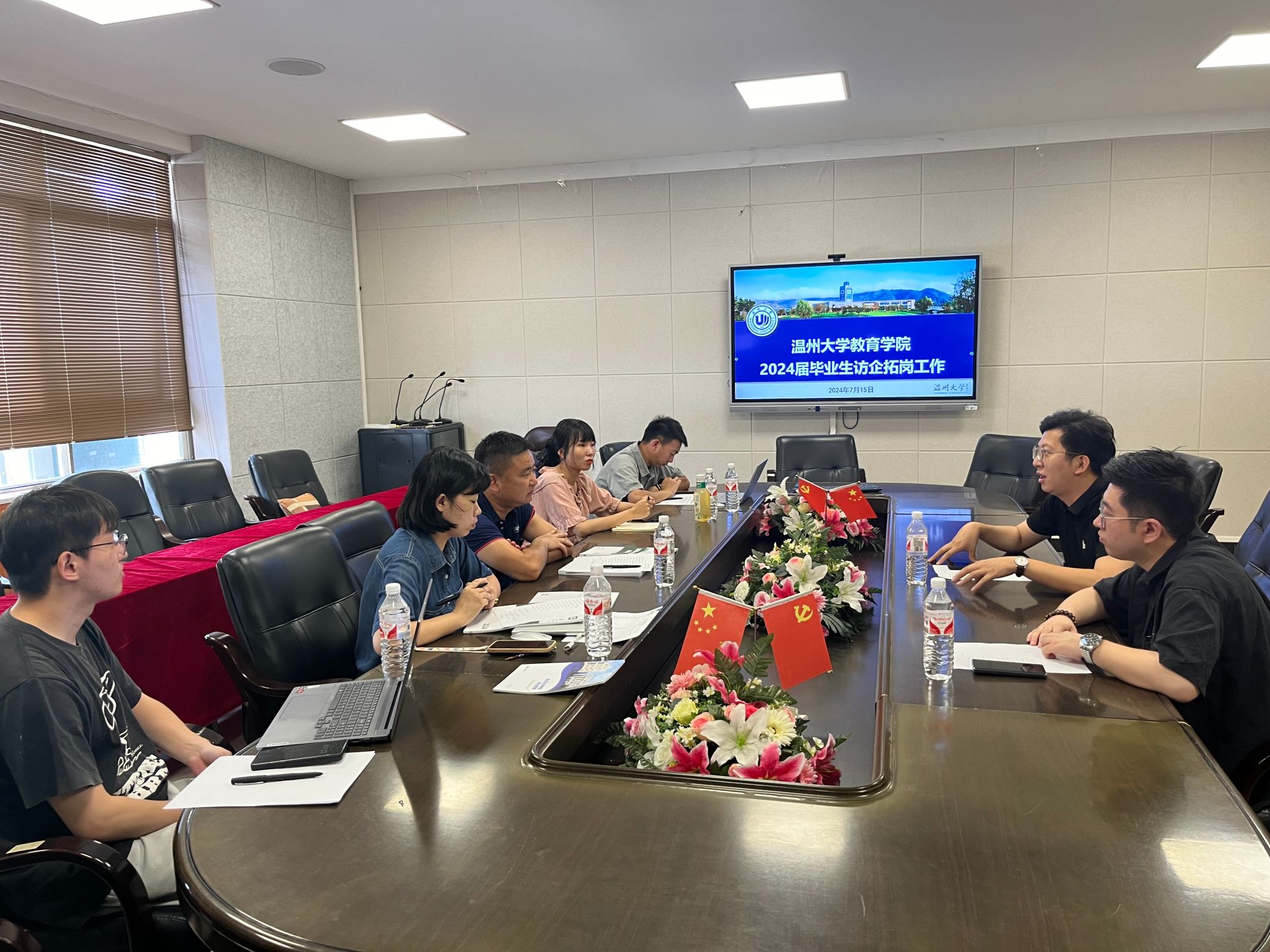 7月15日上午,财神捕鱼 于南校区9A-410会议室举行2024届毕业生访企拓岗工作座谈会。温州市强城人力资源有限公司总经理张祥、温州市点兑点教育咨询有限公司总经理赵坤一行来访财神捕鱼 ,就助力师范毕业生就业相关问题与财神捕鱼 进行交流座谈。院党委副书记兼纪委书记章志图、院学工办主任严晓秋出席,毕业班辅导员等老师参与座谈交流。