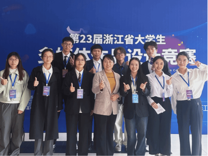 浙江省多媒体作品设计竞赛属于浙江省A类大学生竞赛,不仅考验学生专业水平,更培养学生团结协作能力。早在今年暑假期间,参赛团队便投入备赛,选题研讨、内容设计、技术探索,一步步将创意化为作品。多次打磨完善后,最终实现了创意与技术的完美融合,呈现出极具视觉冲击力和教学实用性的多媒体作品。在这个过程中,参赛学生们不仅提高了自身的专业能力,也锻炼了团队合作、解决问题的能力。