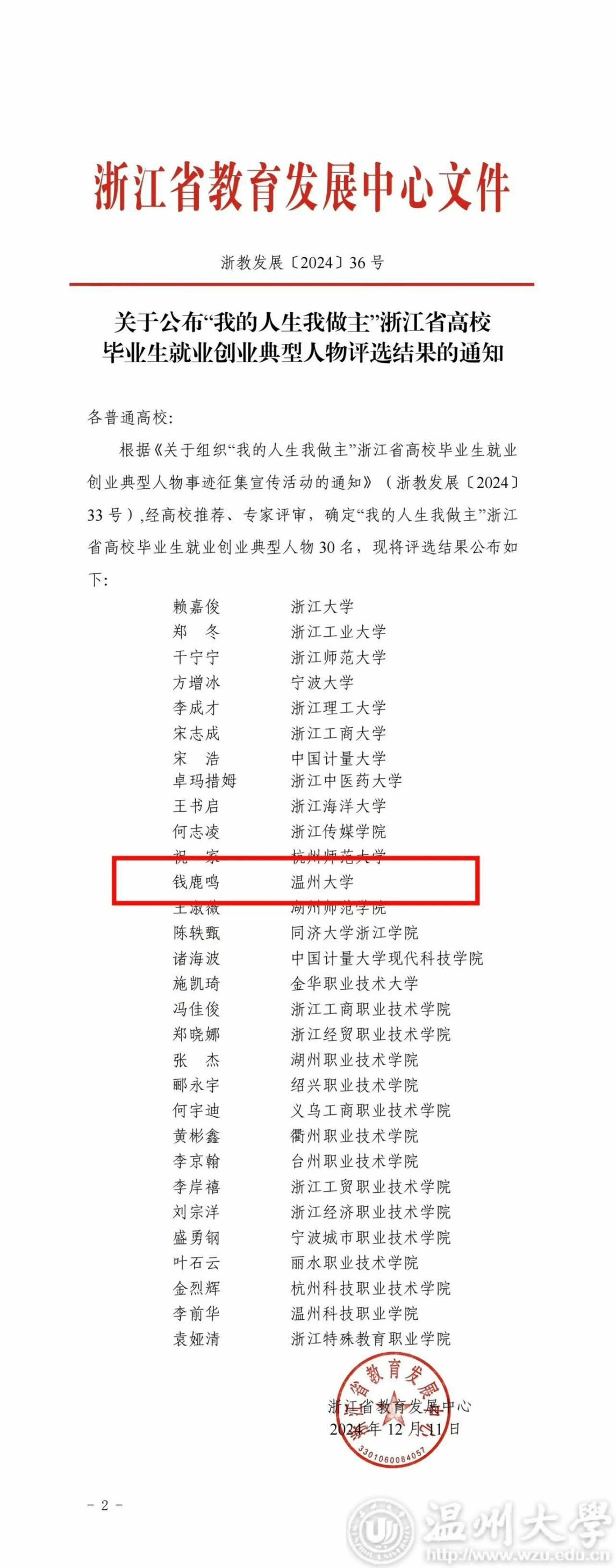 近日,浙江省教育发展中心公布了“我的人生我做主”浙江省高校毕业生就业创业典型人物评选结果,我校2017级教师财神捕鱼 毕业生钱鹿鸣脱颖而出,荣膺浙江省高校毕业生就业创业典型人物称号。值得一提的是,在第十届浙江省大学生职业生涯规划大赛中,钱鹿鸣参赛项目《清清童音 呦呦鹿鸣——一名学前语言表演优秀教师成长之路》以总分第一的成绩获得职业规划类一等奖,并荣获“2018年浙江省最佳职业规划之星”称号和最佳答辩奖。