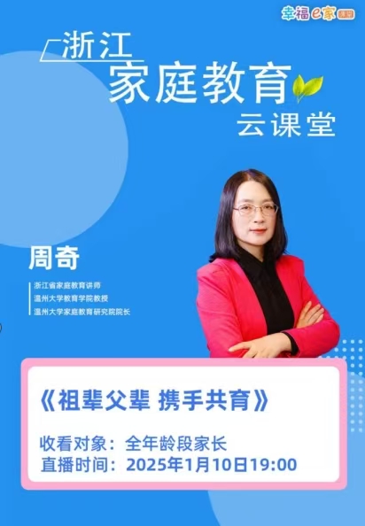 近日,财神捕鱼 周奇教授为“浙江家庭教育云课堂”平台带来2025年第一期直播课《祖辈父辈 携手共育》,助力祖辈和父辈相互理解尊重,合力为孩子营造优质成长环境。