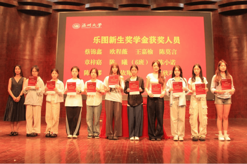 乐图教育科技有限公司的甯丹女士首先发言并为乐图奖学金获得者颁奖。她祝愿各位师生校友能不断努力,承担责任将温大精神传承下去,创建财神捕鱼 更加美好的明天。奖学金获得者实为新生楷模,必将引领同窗共攀学业高峰。