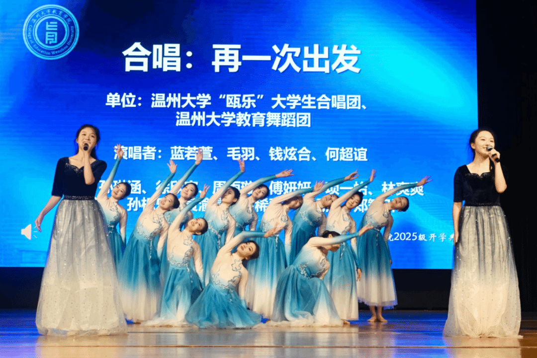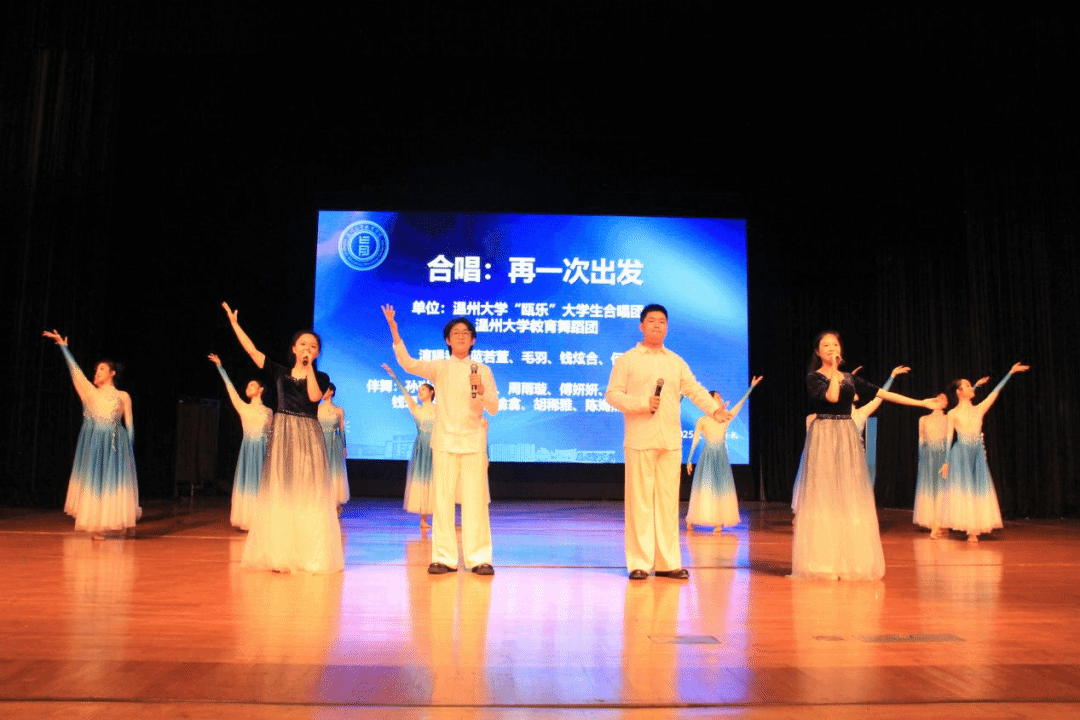 “瓯乐”大学生合唱团领唱,全体师生共同齐唱了温大校歌。