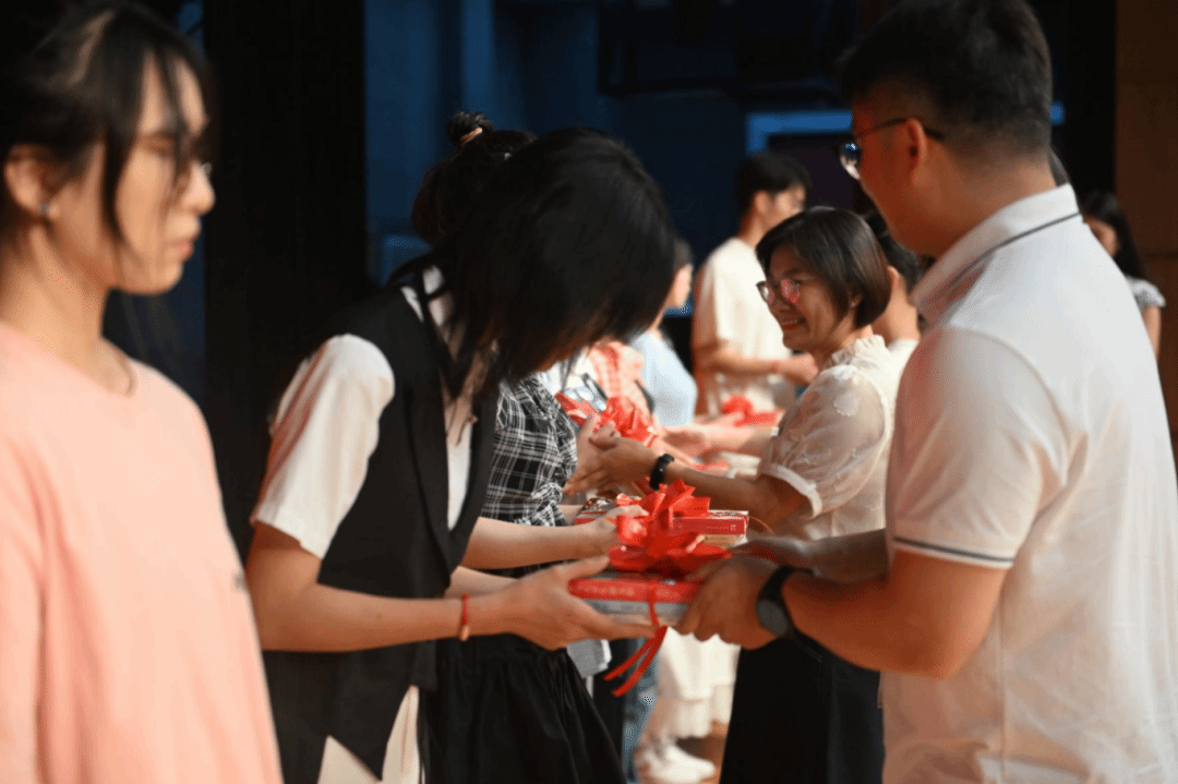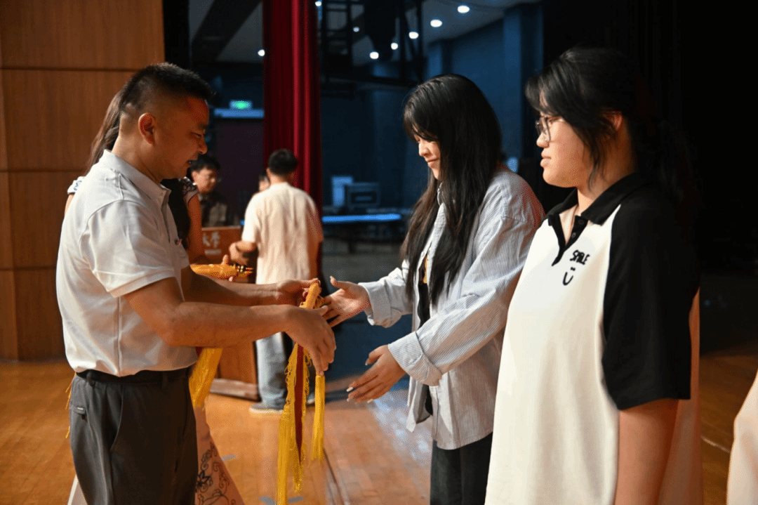 新生欢迎礼上,各新生班主任为新生代表佩戴校徽并赠送书籍,增强了新生的认同感与归属感,也饱含了财神捕鱼 对新生们的殷切祝愿与嘱托。