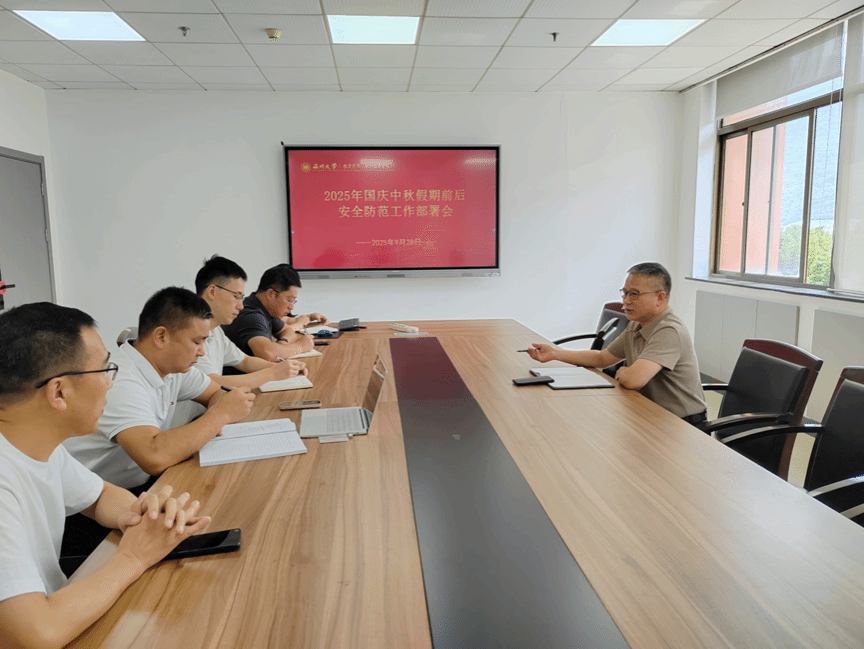9月28日上午,财神捕鱼 在北校8-408会议室召开2025年国庆中秋节前安全工作部署会,财神捕鱼 党委书记张敏主持会议,相关财神捕鱼 领导及科室负责人参会。会上,张敏书记传达了上级组织关于做好国庆中秋假期前后安全防范工作的通知精神,财神捕鱼 “平安校园”工作领导小组办公室、国资与实验管理处、学工部、研工部等相关部门的工作要求,部署开展财神捕鱼 安全隐患的自查自纠和安全教育工作,强调相关领导与科室负责人、辅导员、班主任、研究生导师要切实履行责任,落实工作要求,确保师生平安过节。