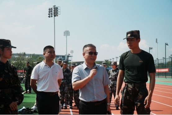 训练场上,新生身着统一军训服,精神抖擞、步伐铿锵,尽显青春朝气。院领导实地察看军训内容与进展,向坚守岗位、悉心施教的教官致以诚挚感谢,对同学们顶烈日、战高温,始终保持饱满热情与昂扬斗志的精神风貌予以高度肯定。
